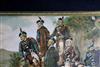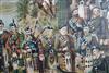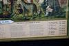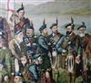 GATHERING OF THE 1886 SCOTTISH CLANS FRAMED POSTER, Possibly 19th century impression. Color lithograph depicting Albert Edward (Bertie), then Prince of Wales and later King Edward VII, hosting the legendary "Gathering of the Clans" in 1886 with chieftains from these clans: Cameron, Campbell, Chisholm, Farquharson, Fraser, Forbes, Gordon, Graham, MacDonald, MacDonnell, MacFarlane, MacGregor, MacIntosh, MacKenzie, MacLachlan, MacLean, MacNab, MacPherson, MacRae, Munro, Murray, Ross, Scott, Stewart, Sutherland. Framed. Not examined out of frame. - 16.5 x 22.5 inches; frame: 21 x 27 inches. Estimate $200-300