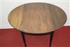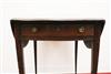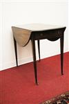 GEORGE III MAHOGANY OVAL-TOP PEMBROKE TABLE. Drawer fitted with brass ring pulls; on casters - H: 28 1/2 in. W: 38 in., with leaves extended. D: 31 3/8 in.$250-350