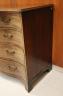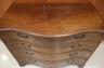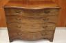 GEORGE III MAHOGANY SERPENTINE-FRONT FOUR-DRAWER CHEST Top with molded edge projects over four full-width drawers above shaped bracket feet; inlaid escutcheons. H: 38 1/2". W: 45 3/4". D: 24". $500-700