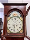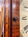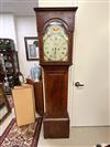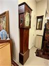 GEORGE III SCOTTISH INLAID MAHOGANY TALL-CASE CLOCK. Face signed T. Cochnone, Glasgow. Flat bonnet and case have line inlay; painted face with gilt spandrels. Lacking bracket feet; with key. H: 81 in.; W: 21 in.; D: 10 in. Imperfections Estimate $200-400