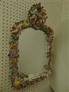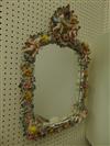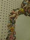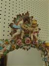 GERMAN POLYCHROMED PORCELAIN FIGURAL-DECORATED WALL MIRROR, early 20th century. Cartouche shape with putti and flowers. - 17 in. x 30 in.Estimate $250-350
