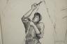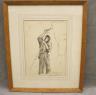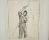 GIFFORD ALEXANDER COCHRAN American, 1906-1978 The Draftsman at Work, 1939 Pencil on paper This 1939 sketch captures likely a draughtsman or lettering artist at work. Ink signed (the artist's initials) and dated lower right hand corner. Framed. Not examined out of frame. Sight (as matted): 11.5 x 8.25 inches; frame: 19 x 15.5 inches $100-150