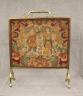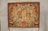 GROS-POINT AND PETIT-POINT PANEL DEPICTING RENAISSANCE COUPLE MOUNTED AS FIRE SCREEN 18th-19th century Tubular brass frame with lift handle. . Overall, H: 27 1/2 in. W: 22 in. $150-250