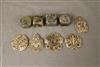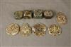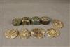 GROUP EIGHT CHINESE STONE AMULETS, CARVINGS, AND ONE MARBLE SEAL. Variously pierced and carved with animals and mythical birds - Largest, D: 3 1/4 in.$100-150