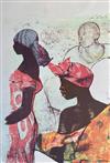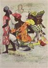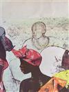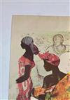 HANS ERNI (Swiss, 1909-2015). Markt von Dakar (Market of Dakar), circa 1951, Limited edition lithographs printed in colors numbered 18 (?) of an edition of 60; artwork depicts figures in vibrant, patterned clothing in a lively market setting. Pencil numbered and signed at base. Published by Swiss-based "Guilde Internationale de la Gravure." Unframed. Not mounted or laid down. - Sheet: 22 x 14.75 inches $80-96