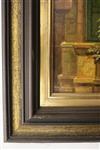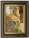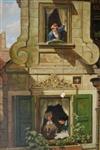HANS K. NEUBERT (German, 20th Century). The Intercepted Love Letter, 1977, Oil on board artwork after the 1860 painting by Carl Spitzweg (German, 1808 - 1885). Signed lower left corner. Framed. - 17.5" x 11"; Frame 24" x 18" Estimate $350-450