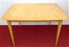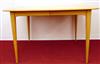 HEYWOOD-WAKEFIELD WHEAT-FINISH DINING TABLE. Rectangular with rounded corner; tapering legs - H: 29 in.; top, 47 in. x 36 in.Estimate $250-450