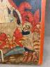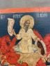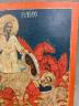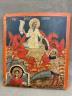 ICON DEPICTING THE FIERY ASCENSION OF THE PROPHET ELIJAH Religious icon depicts a prominent theme in Orthodox Christian iconography. Elijah is portrayed ascending into heaven in a golden chariot pulled by four red winged horses. Tempera colors on wooden panel, typical of Russian or Byzantine craftsmanship. 10 1/4 in. x 9 in. $150-200