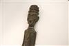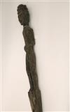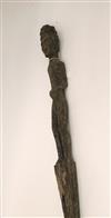 INDONESIAN KALIMANTAN DAYAK WOODEN GUARD FIGURE, Mid 20th century. Patinated hand-carved wooden kitchen or house guard by the Kalimantan Dayak peoples from the interior rain forests of Borneo. The statue has sings of usage as it was originally used as a protective figure standing guard in front of tribe people's home. Consignor acquired it while working in the region. Estimate $200-250