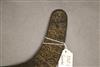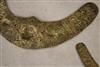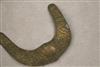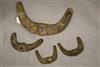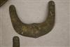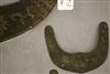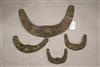 INDONESIAN SUMBANESE MAMULI PENDANTS. Lot of four patinated sumbanese mamuli pendants, which are traditional ornaments from Sumba Island in eastern Indonesia. Mamuli are typically omega-shaped ornaments and are highly symbolic. These pendants hold significant cultural importance in Sumbanese society, representing fertility and social status. They play a crucial role in ceremonial gift exchanges, particularly during marriage negotiations, and symbolize ancestral connections. Historically, mamuli were worn as ear ornaments when earlobe elongation was practiced, but today they are primarily worn as pendants around the neck. - Length: 11 inches ( Largest Piece). $100-180
