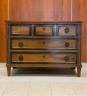 ITALIAN NEOCLASSICAL FRUITWOOD THREE-DRAWER CHEST late 18th century Rectangular top projects over one full-width drawer faced on three, above two full-width drawers; paneled drawer fronts with gilt fillets; brass medallion pulls H: 36 1/2 in.; W: 50 in.; D; 24 in. $600-800