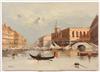 ITALIAN SCHOOL (20th Century). Venice View, 1987, Oil on canvas. Signed lower left corner. Unframed. - 19" x 27"Estimate $120-180