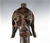 IVORY COAST FANG RELIQUARY GUARDIAN HEAD, Mid-to-late 20th century. Patinated hand carved guardian head of the Fang People in Ivory Coast. This head would have served as part of a reliquary ensemble, and was originally placed on a box containing portions of the skulls of important ancestors. Acquired at a Chicago-based auction of the African and ethnographic artifacts of collector Max Garb. - Height: 13 inches. Estimate $250-350