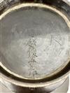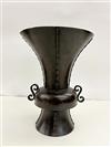 JAPANESE BRONZE FLARING TWO-HANDLE VASE. Signed with incised characters marked under foot - H; 12 in.Estimate $200-300