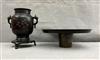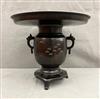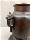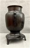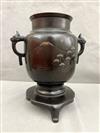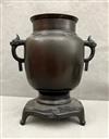 JAPANESE BRONZE IKEBANA VASE. Meiji period. Typical form with relief-cast decoration and two handles$100-150