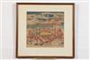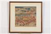 JAPANESE SCHOOL (Possibly Late 19th Century). HAND-COLORED AND GILDED WOODCUT OF THE DEATH OF THE HISTORICAL BUDDHA (NEHANZU), handcolored and gilded woodcut showing numerous lay persons, monks, deities, birds and animals. Unexamined out of frame. - 10 1/2" x 10 1/2" Frame: 16 1/2" x 16 1/2" Estimate $180-260