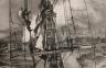 JOHN ALEXANDER HARRISON NOBLE American, 1913 - 1983 Dying in the English Kills, Mast & Man #2, circa 1967 Lithograph on paper. Pencil titled and signed at base. Framed. Not examined out of frame. Image size: 11 15/16 × 15 13/16 in. $200-300