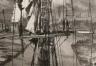 ARTIST PROFILE: John Alexander Harrison Noble (1913–1983) was a premier American maritime artist whose work serves as a definitive visual chronicle of the New York Harbor and the twilight of the "Age of Sail." The son of painter John "Wichita Bill" Noble, he arrived in the United States from Paris in 1919 and developed a lifelong bond with the Staten Island waterfront, working as a professional sailor on schooners and in marine salvage for over two decades. Noble is best known for his collection of 79 masterful lithographs, which he created within a singular, floating studio constructed from salvaged ship components and anchored at the "ship graveyard" in Bayonne, New Jersey. His art is distinguished by its dramatic chiaroscuro and technical precision, capturing everything from the skeletal remains of wooden vessels to the industrial grit of modern harbor life. Today, his extensive historical and artistic legacy is curated by the Noble Maritime Collection at Snug Harbor, and his impact on New York’s nautical culture is commemorated by a Staten Island Ferry bearing his name.