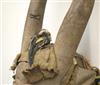 LARGE CARVED LIBERIAN WOODEN TOMA TRIBE MASK, Early-to-mid -20th Century. Patinated large carved wooden helmet mask of the Toma people of Guinea (known as Loma in Liberia). With signs of usage and handling. - 36 inches. Estimate $300-500