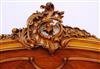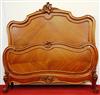LATE 19TH CENTURY LOUIS XV STYLE CARVED WALNUT FRAME FOR DOUBLE-SIZE BED. High-relief carved floral, shell and leaf crest; carved and paneled head board and lower footboard; with pairs of side tails. (One original pair, one modern). - H: 62"; W: 63". Estimate $150-250