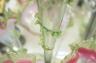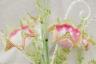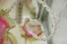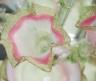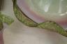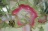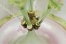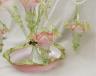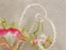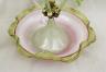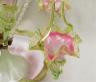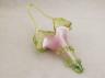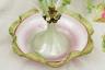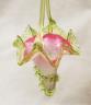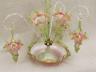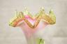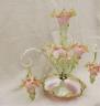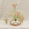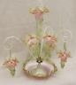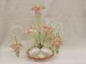 LATE 19TH CENTURY PINK AND GREEN ART GLASS EPERGNE Circular base with undulating rim centers trumpet-shape vase surrounded by three smaller trumpet shape flower-holders and three scrolling arms suspending flower baskets. Height: 21". $300-400