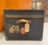 LATE 19TH-EARLY 20TH CENTURY WOODEN STRAP-SIDED CUBE FORM TRUNK Made by John Cattnach, New York; labeled. H: 18". Top: 20 1/2". $100-200