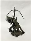 LINCOLN FOX CONTEMPORARY "INDIAN SHOOTING ARROW." , INDIAN BRONZE, 1988,. Signed and dated on rocky base bronze. H: 15 1/2". Estimate $200-300