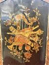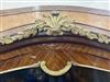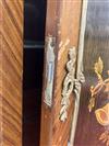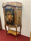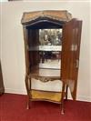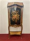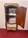 LOUIS XV STYLE BURLWOOD AND FRUITWOOD PARQUETRY ONE-DOOR BOMBE-FRONT CABINET. Painted with cluster of instruments, medial shelf, gilt-metal mounts - H: 68 in.; W: 28 1/2 in.Estimate $200-400