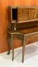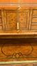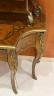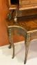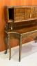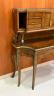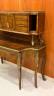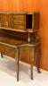 LOUIS XV STYLE BRASS-MOUNTED BURL-WOOD WRITING DESK early 20th century Shaped rectangular top supports galleried superstructure fitted with pair cabinet doors centered by two banks of three drawers and letter compartment; desk has shaped apron with full-width drawer; six cabriole legs with gilt-metal mounts and sabots. H: 52". W: 49 1/2". D: 20 1/2". $400-600