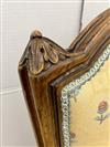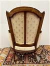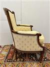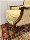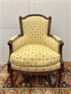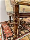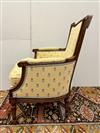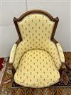 LOUIS XVI STYLE CARVED FRUITWOOD UPHOLSTERED BERGERE. Floral pattern upholstery with yellow ground.Estimate $150-250