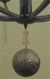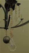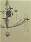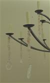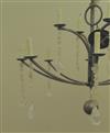 LOWCOUNTRY ORIGINALS "LAUREL BAY" TWELVE-LIGHT TWO-TIER CHANDELIER. Retailed by Perigold. Platinum-finish with natural quartz crystal accents; two tiers, each with six arms suspending chain of quartz crystals terminating in geometric drops; central ball drop. - H: 79 in. D: 43 in. $300-400