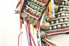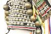 MAGNIFICENT AKHA TRADITIONAL WOMAN'S HEADDRESS, SHAN STATE, MYANMAR, BURMA, Mid 20th century. Akha woman traditional headdress made of a variety of materials including metal, coins, brass bowls, cloth, and glass beads. Consignor acquired headdress in Taungup, a principal town of the Taungup Township in the Rakhine State of westernmost part of Myanmar. - height: 23 inches (including beads). Estimate $200-300