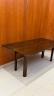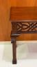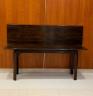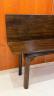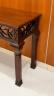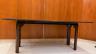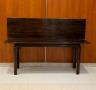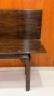 MAHOGANY FOLD-TOP CONSOLE TABLE OPENING TO DINING TABLE Rectangular top with molded edge projects over paneled legs with pierced corner brackets. H: 30", folded. Top, 71 1/2" x 18 3/4". $200-300