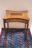 MAITLAND-SMITH CO. SHERATON STYLE INLAID MAHOGANY ONE-DRAWER SIDETABLE Rectangular top with in-curved sides and projecting, rounded corners; cross-banding and bands of inlay; reeded tapering round legs H: 26 in. W: 24 in. D: 19 in.