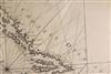 MAP 1764 GOLFE DE VENISE. Map of the Adriatic Sea. Engraved double-page-folding map by maritime cartographer and map publisher Joseph Roux (French, 1725-1793) taken from "Carte de la Mer Mediteranee en Douze Feuilles . . . " published in Marseille (France), 1764. Framed. Not examined out of frame. - 24 x 32 inches; frame: 26 x 34 inches. Estimate $75-125