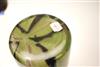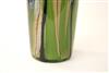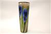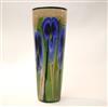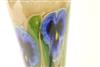 MAYAUEL WARD PEARL HAND BLOWN LATTE ART GLASS VASE: WITH BLUE PANSIES. - H: 18 in.Estimate $300-500
