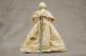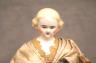 MID-19TH CENTURY PORCELAIN HEAD DOLL WITH PAINTED BLONDE HAIR Lace trimmed vintage clothing. Height: 15", overall $100-150