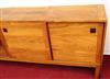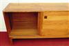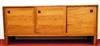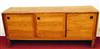 MID CENTURY MODERN DANISH TEAK THREE-DOOR SIDEBOARD/CREDENZA DESIGNED BY E. JAKOBSEN SKIVE , circa 1960. Three sliding doors with banded edges and recessed square pulls. - H: 30 1/4 in.' W: 71 in.; D: 18 1/2 in.Estimate $400-600