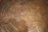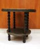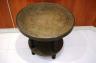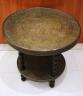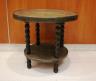 MID-EASTERN CIRCULAR SIDE TABLE WITH BRASS-OVER-WOOD TOP AND MEDIAL SHELF Fine low-relief decorated brass-work; spool-turned legs. H: 21 3/4"; Top, D: 23 3/8". $75-125