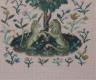 NEEDLEWORK SCENE DEPICTING LION AND UNICORN, AFTER THE LADY AND THE UNICORN SERIE After "The Lady and the Unicorn Series at the Musee de Cluny Framed, app. 14 1/2 in x 18 1/2 in. $50-100