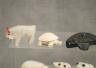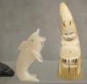 Artists craft these fetishes from diverse natural materials, including stones like turquoise and jet, or organic elements such as mother-of-pearl, antler, and bone. Many figures are adorned with "bundles" of coral or shell tied to the back as offerings to the spirit within. Length of Black Turtle 1.75 inches $100-150