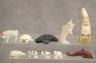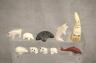NINE ZUNI INTRICATELY CARVED MEDICINE FETISHES For over a millennium, the A:Shiwi (Zuni) have carved animal fetishes to honor the "medicine" or natural traits of wildlife, serving as focal points for personal growth and spiritual connection. These objects are treated with deep respect, as the true value lies in the indwelling spirit rather than the physical carving itself. While strict protocols govern ceremonial items, non-ceremonial fetishes are widely used for reflection.
