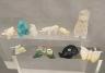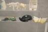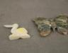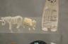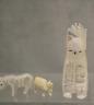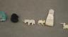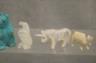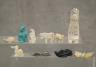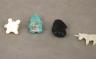 Artists craft these fetishes from diverse natural materials, including stones like turquoise and jet, or organic elements such as mother-of-pearl, antler, and bone. Many figures are adorned with "bundles" of coral or shell tied to the back as offerings to the spirit within. Height Nacar Indigenous American Figurine 2.75 inches $100-150