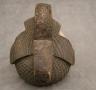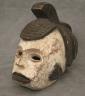 Nigerian Igbo People Agbogho Mmanwu Wooden Mask This carved wooden mask (seen in IMG_2100.jpg) is a traditional artifact from the Igbo people of southeastern Nigeria, specifically representing the Agbogho Mmanwu, or "Maiden Spirit" style. These masks are characterized by their distinctive white-painted faces, traditionally colored with kaolin clay to symbolize the purity, beauty, and peaceful nature of ancestral spirits. The mask features a highly stylized, dark-stained crest or headdress that mimics the elaborate, traditional hairstyles worn by young Igbo women during significant social ceremonies. With its delicate, almond-shaped eyes, narrow nose, and small mouth, the carving embodies the Igbo aesthetic ideal of feminine grace and spiritual refinement. Historically, such masks were worn by men in full-bodied colorful costumes during annual festivals to honor the spirits of deceased maidens and reinforce social moral codes within the community. height: 13 inches $80-120