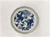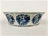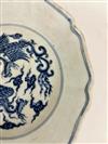 PAIR CHINESE BLUE AND WHITE PORCELAIN WASHERS. Flaring circular vessel with serpentine edge outline; interior, exterior and base decorated with mythical birds. - D: 7".Estimate $200-300
