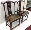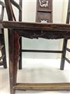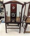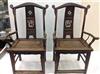 PAIR CHINESE CARVED ELMWOOD OPEN ARMCHAIRS, last quarter 19th century (late 1870s-1890s), Shanxi, China. Cloud and heavenly stallion motifs on back; footrests on bottom - 27 in. x 25 in. x 39 3/4 in.Estimate $400-600