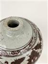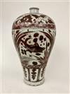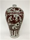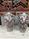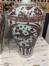 PAIR CHINESE UNDERGLAZE RED CERAMIC OVOID VASES. Fish and flowering plant decoration. - H: 17 1/2".Estimate $300-400