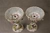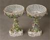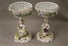 PAIR DRESDEN (CARL THIEME) POLYCHROMED PORCELAIN FIGURAL COMPOTES. Applied fully sculpted blossom decoration; floral sprays - Compote, H: 10 3/8 in.$200-300