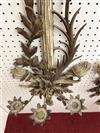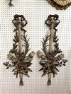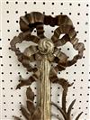 PAIR FRENCH CARVED GILT-WOOD THREE-LIGHT WALL SCONCES. Bow-knot and ribbon crest above crossed torch-and-sheaf of arrows motif above tassels; three arms terminate in candle nozzles - H: 39 in.Estimate $300-400