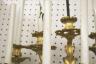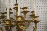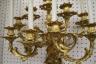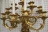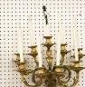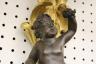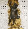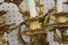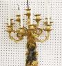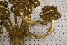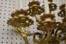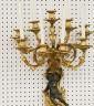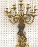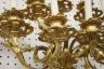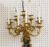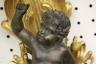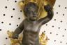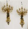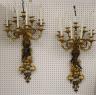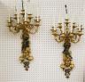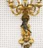 PAIR FRENCH GILT BRONZE FIGURAL NINE-LIGHT WALL SCONCES 19th century Leaf-cast support centering putto on rockery issues candelabra with nine scrolling branch-form arms issuing candle nozzles with ornately cast and pierced bobeches; later electrification. H: 33 in., excluding candles $1,200-1,500
